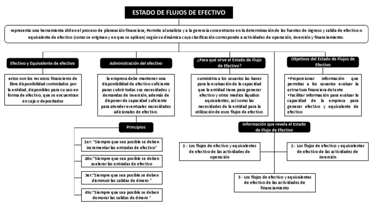 Los mapas conceptuales de flujo no siguen un orden determinado por posicionamiento sino por indicadores es decir señalizaciones o flechas que indican la. Estado de flujo de efectivo. Exigir a las entidades que suministren información acerca de los movimientos históricos en el efectivo y equivalentes de efectivo a. Crear un mapa mental. RAZONES DEL ESTADO DE FLUJO DE EFECTIVO EFECTIVO SUFICIENCIA EFICIENCIA INVERSORES PRESTAMISTAS Propiedades.