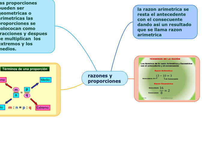 Razones y Proporciones - Mapa Mental. La razón aritmética es la que expresa la diferencia entre las cantidades correlativas de una progresión aritmética. Una proporción es el resultado de igualar dos razones. Mapa conceptual de la razones y proporciones 2. Mapa conceptual de razones y proporciones.